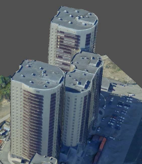 Image: 3D model of residential building from true orthophoto. – Uralgeoinform 2019 ©