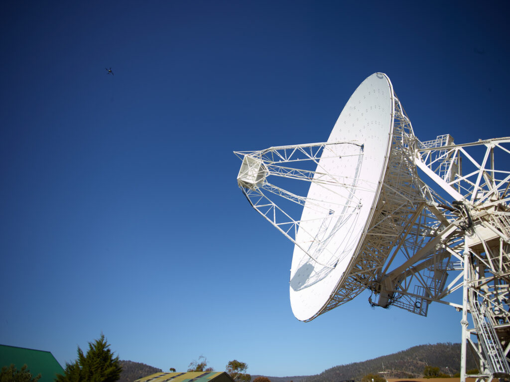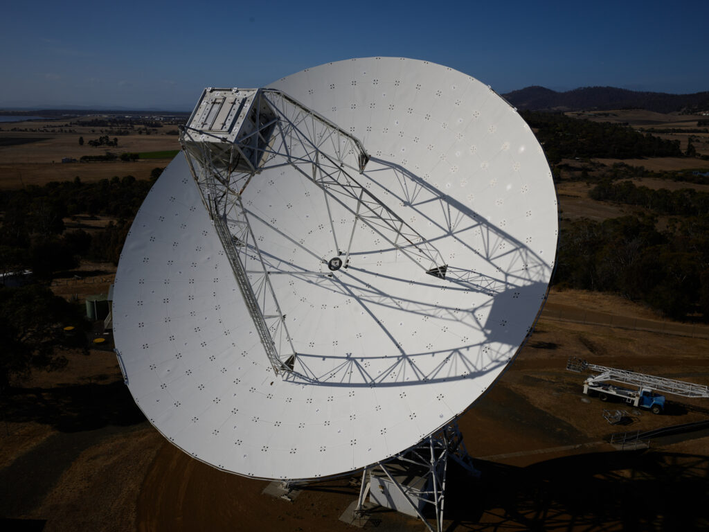 The Hobart radio telescope is part of the International Service for Geodesy and Astrometry (IVS – https://vlbi.org/). Radio telescopes around the world are coordinated to observe together and measure the worlds most precise coordinate frame, as well as the Earths position and orientation in space. This in change is essential for precise satellite navigation and timing information used for secure communication or banking.