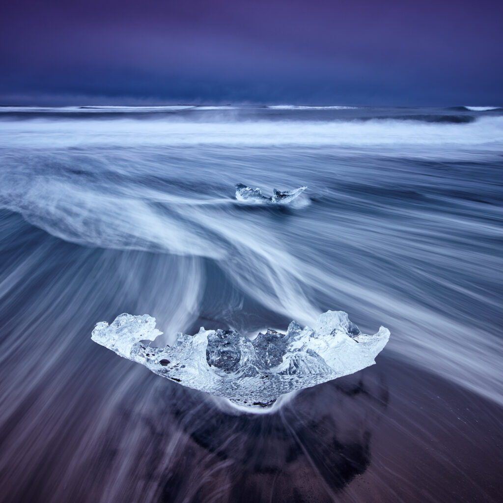 Which is something I learned about 3 seconds before I clicked the button to capture this image of one of the baby icebergs washed up on Iceland’s Diamond Beach, at the mouth of Jokulsarlon.